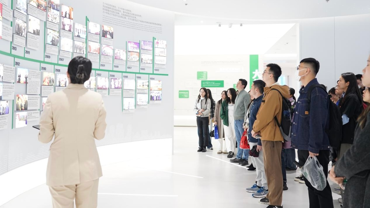 在中德合作成果展示馆,师生们深入了解了中德合作在经贸、文化、科技等领域取得的丰硕成果,作为中德合作的先行者,太仓目前已引进了500多家德国企业,德企在太仓的总投资超过60亿美元,太仓作为“德企之乡”,在将德国元素融入城市发展和建设的过程中,为德国友人打造了第二故乡。