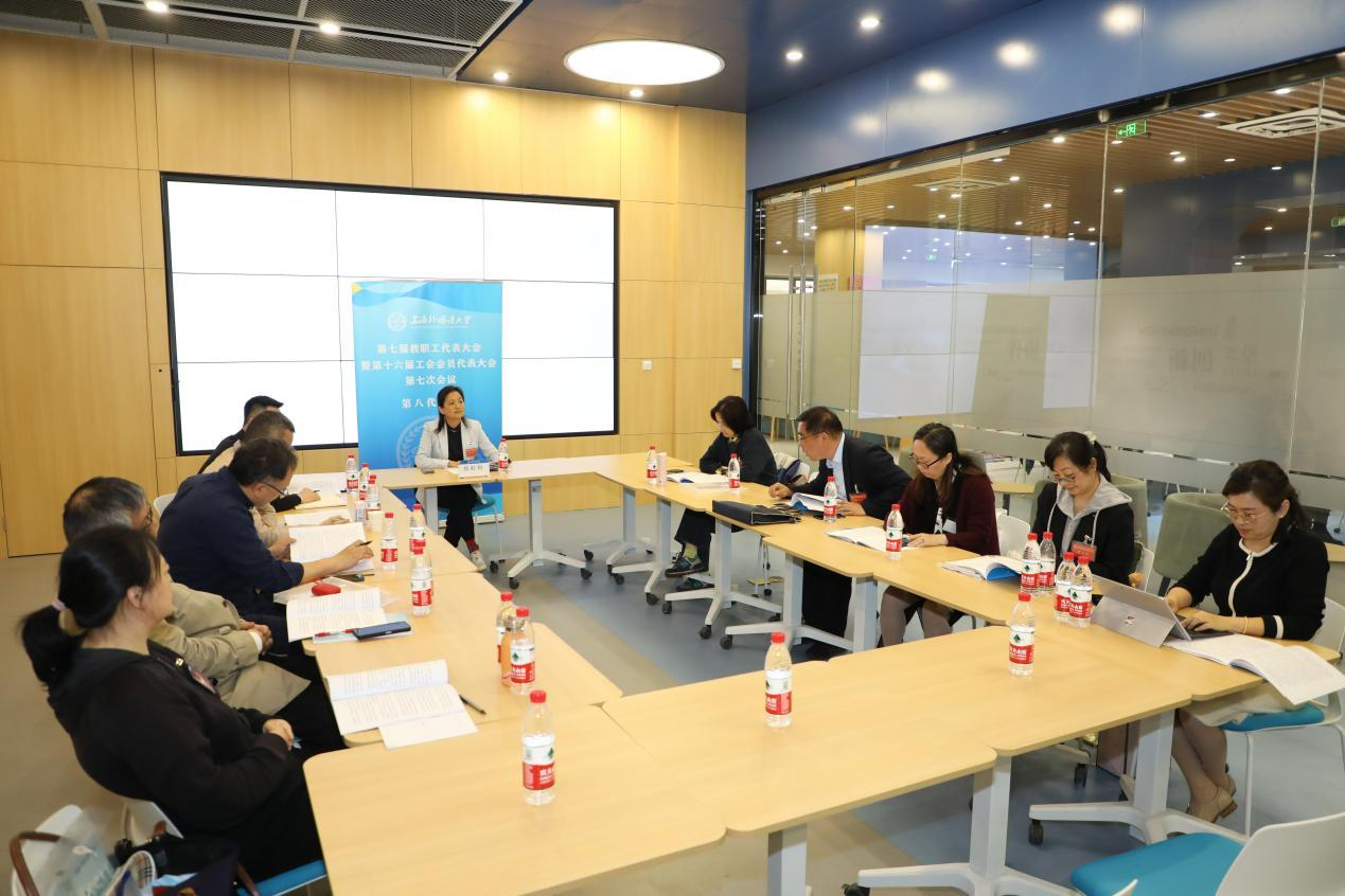 双代会八个代表团团长皮凡倩、王欣、孙宇伟、忻炯俊、鹿钦佞、赵美娟、孙玉和杭虹利进行了代表意见建议收集整理,分别作了分组讨论情况汇报。大会还表决通过了《上海外国语大学第七届教职工代表大会第七次会议决议》和《上海外国语大学第十六届工会会员代表大会第七次会议决议》。